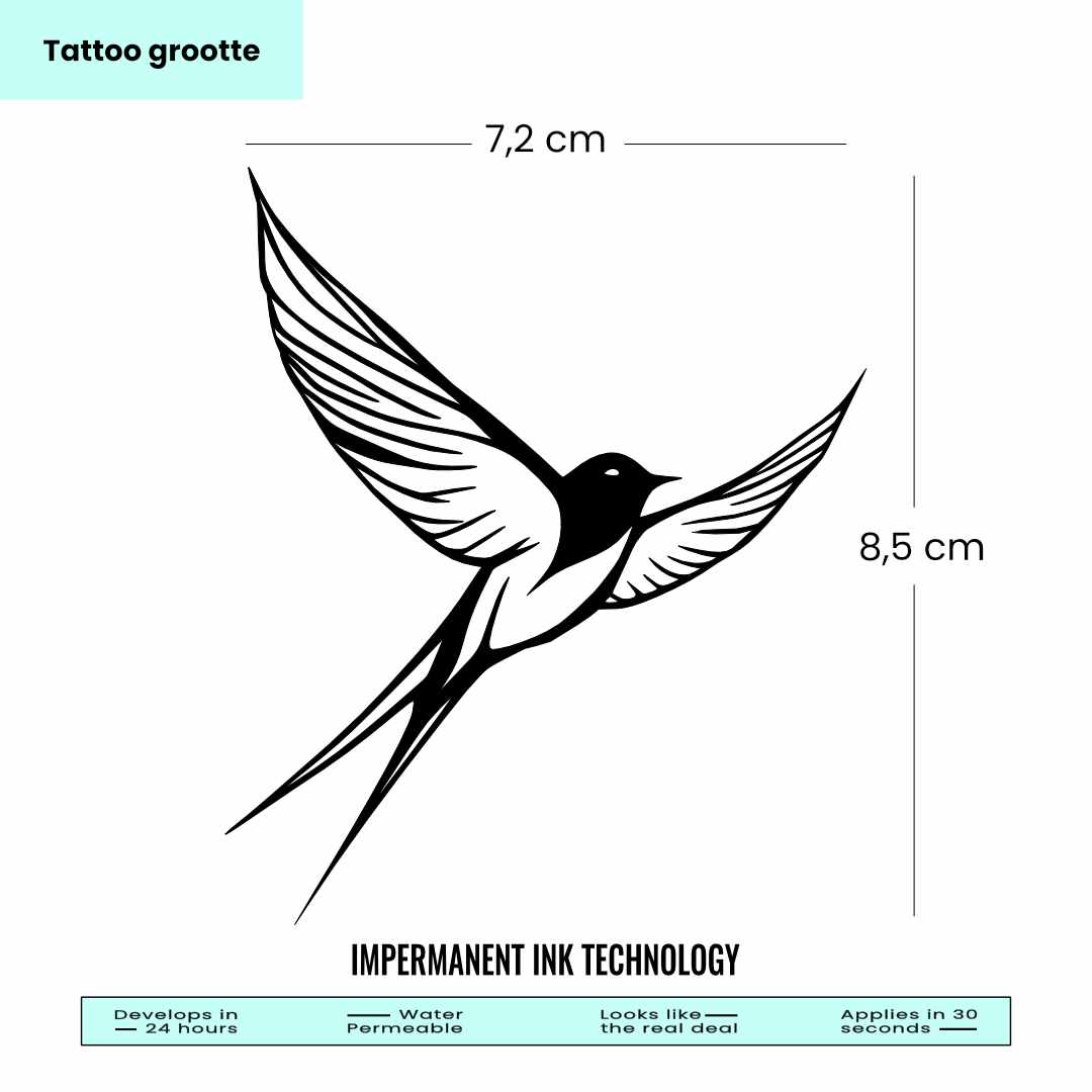 Blijft 1-2 weken zittenImpermanent Ink tatoeages blijven tot 7-14 dagen zichtbaar. |