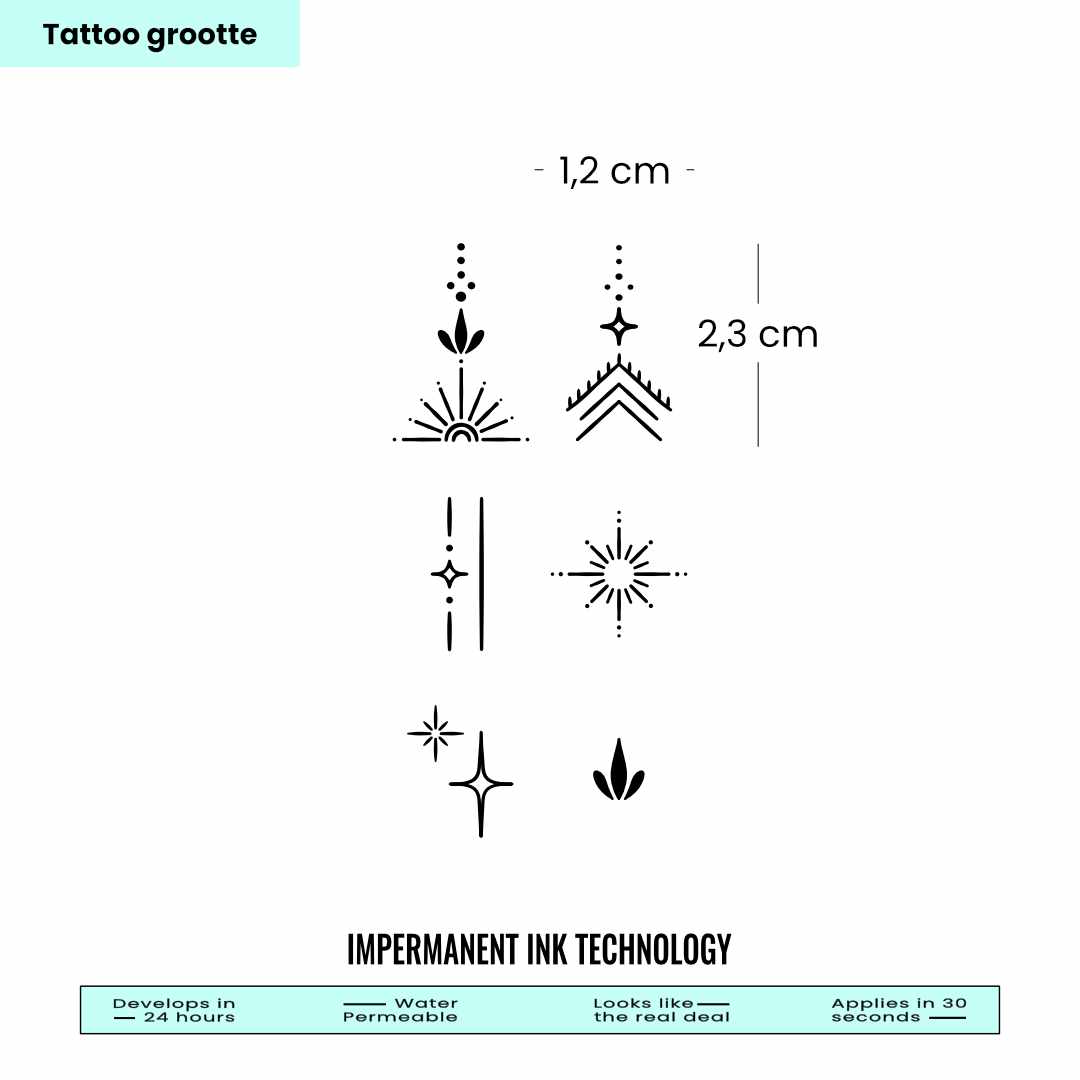 Gezien de Finger Tattoos minder lang meegaan dan onze normale tattoos komt Ornament Finger Tattoos in een set van 2.