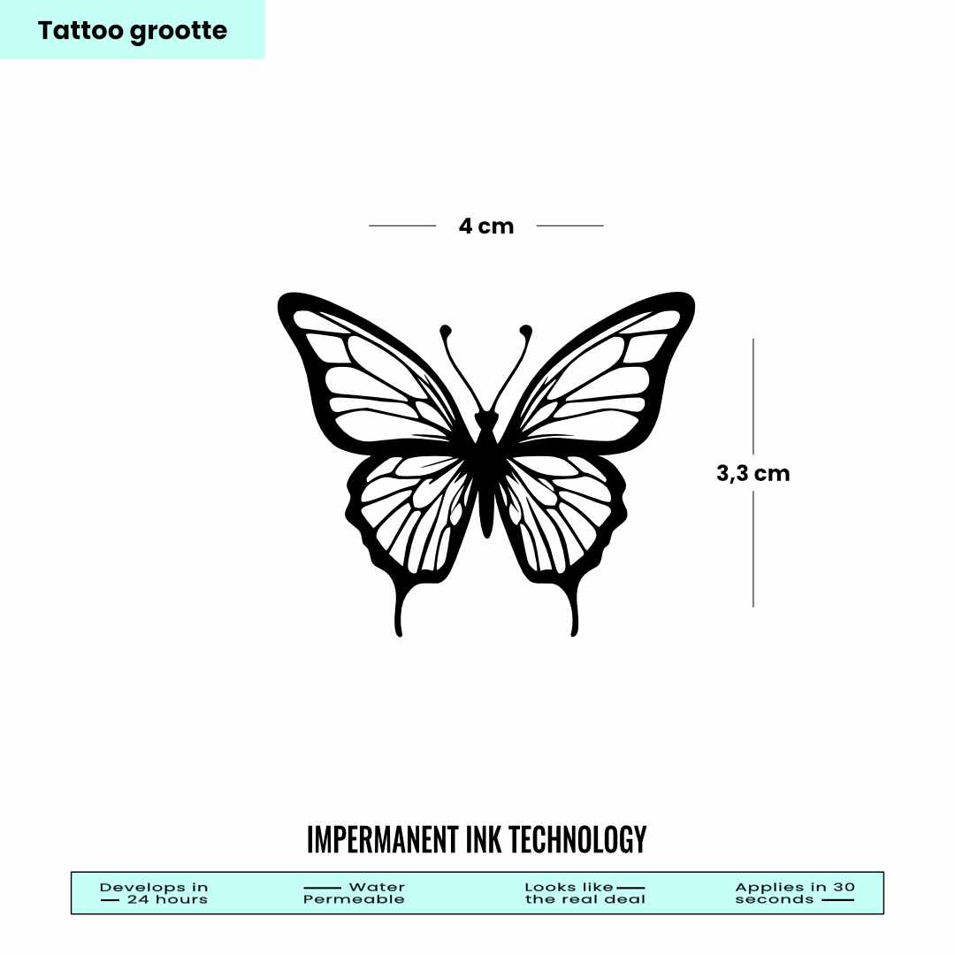 De plantaardige inkt van onze tijdelijke tattoos trekt door tot de eerste huidlaag en ontwikkelt zijn donkere kleur binnen 24 tot 36u.