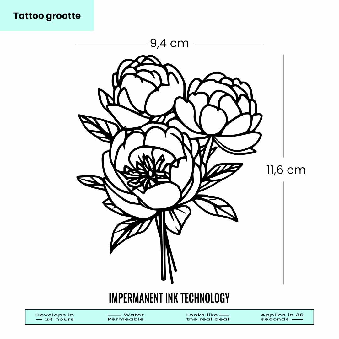 Peonies tijdelijke tattoo gaat 7-14 dagen mee!